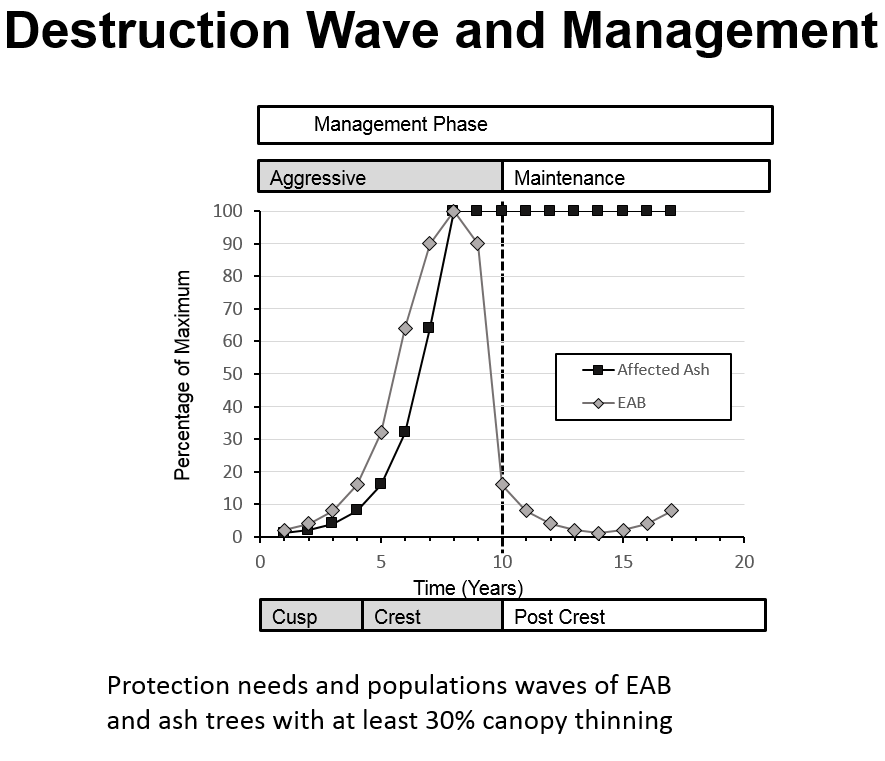 During the Cusp and Crest Phase of the invasion management needs to be very aggressive because EAB populations are high.