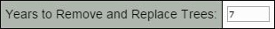 Enter the number of years you will take to cut down and remove ash trees that you plan to remove and not protect. If you live in an EAB infested city where ash trees are beginning to die you should plan to remove all your trees so that they are removed before they are lost to EAB. Use the last column in the above chart enter the duration in years. If EAB is within 15 miles and no ash trees are damaged you should enter 8 years. If you have 8% of your trees damaged you should enter have 4 years to remove.