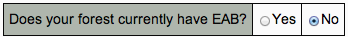 If you indicate that your forest does NOT have EAB, the Calculator assumes that EAB is present, but you can't detect it because you have <1% of your trees with limbs damaged by EAB. At this level, (<1 out of 100 trees) it is hard to distinguish EAB decline from other sources of urban tree mortality. Based on the table above, the calculator assumes you have 8 years until all ash trees are lost.