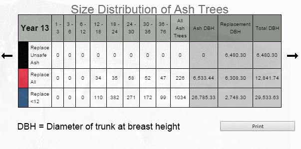 Determine size (total DBH) of remaining ash, replacement, or all trees.